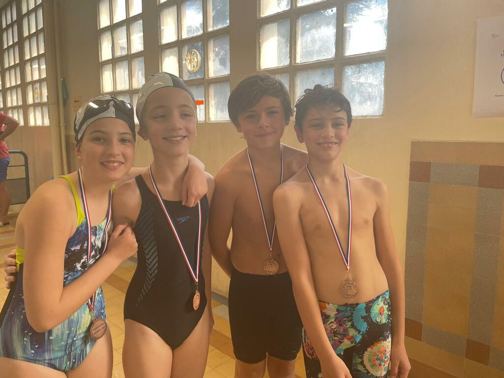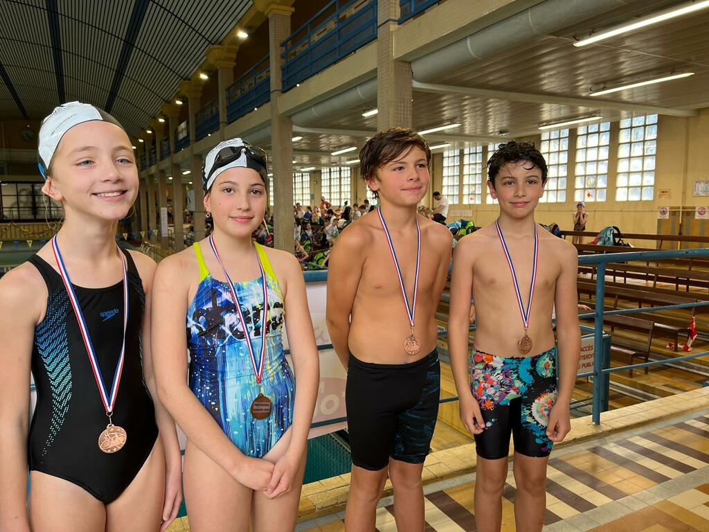 - le podium du relais 4x50 4 Nages Mixte (Chiara Denolly, Chloé Genoni, Juliann Capelle, Sacha Grasset) - médaille de bronze